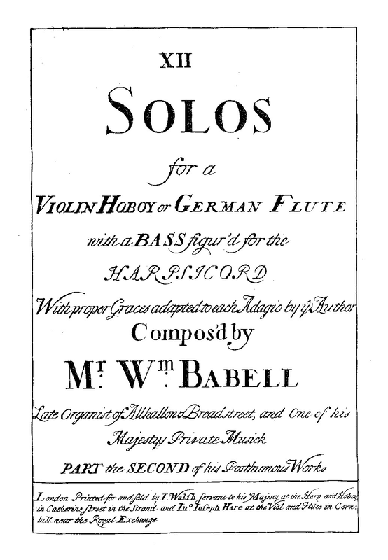 XII Solos, for a Violin or Hautboy or German Flute with a Bass figur'd for the Harpsicord. With proper Graces adapted to each Adagio, by the Author ... part the Second of his posthumous works