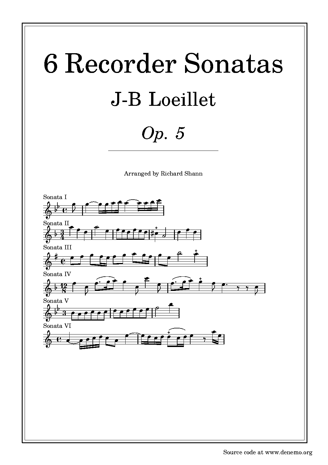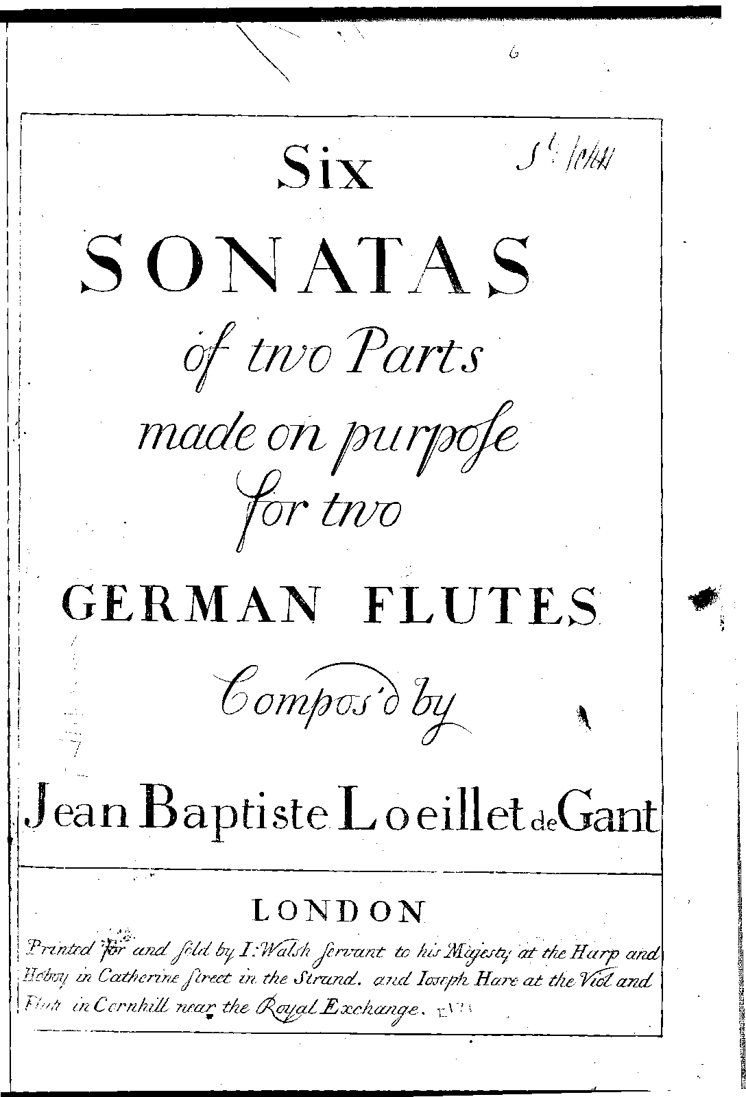 | Alternative. Title | Book II: Six sonatas of two parts, made on purpose for two German flutes |