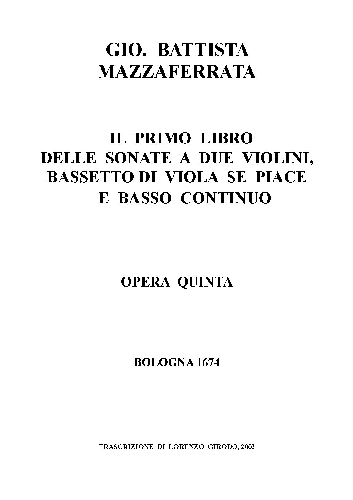 Il primo libro delle sonate a due violini con un bassetto viola se piace