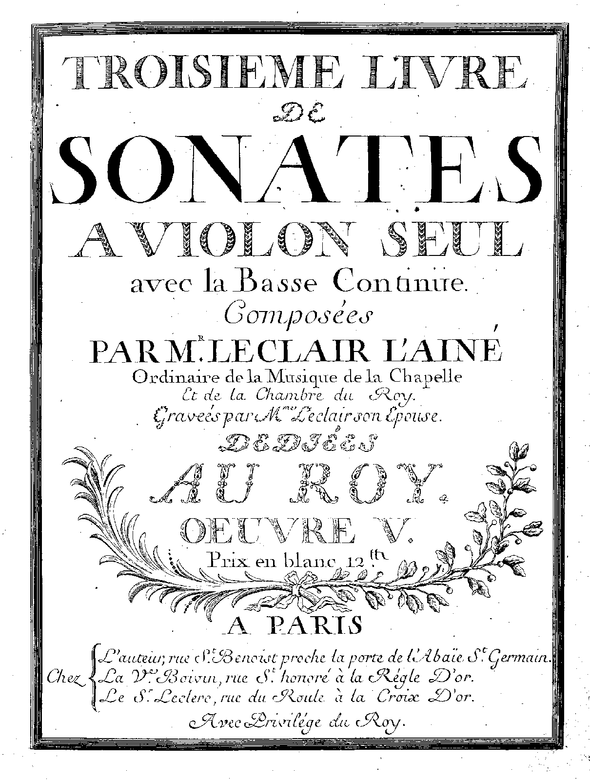| Alternative. Title | Troisieme Livre de Sonates a Violon seul avec la basse continue |