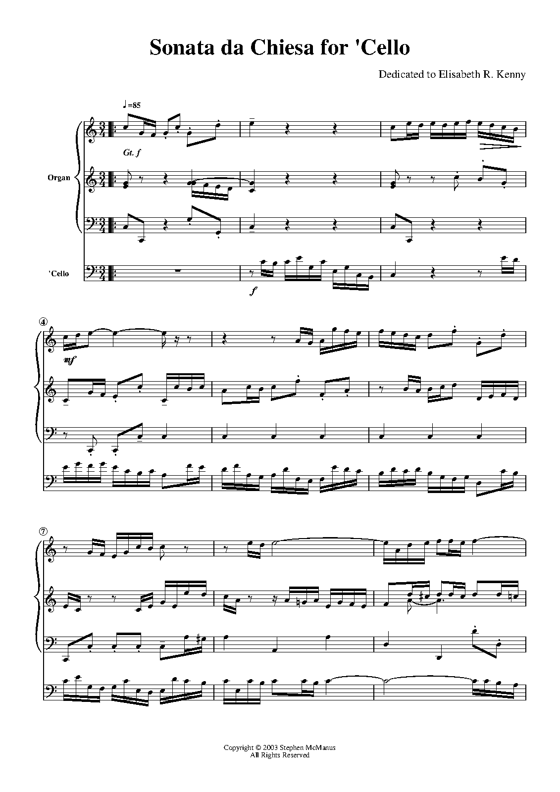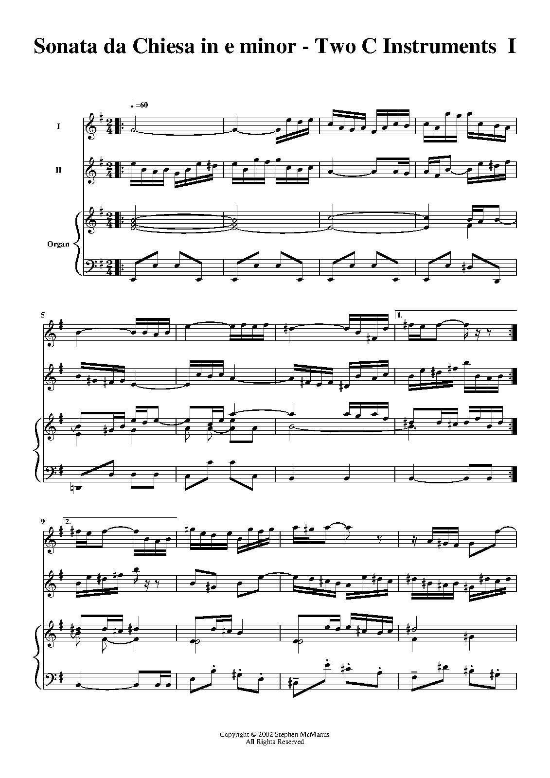 keyboard instruments may be used. When played on the organ registration and (in some instances) use of the pedal organ is left to the descretion of the organist. I encourage the player to extemporize where possible, using ornamentation and figuration to decorate melodic lines in repeat sections (a good example is the beginning of Sonata 7, to decorate the long cantus-firmus like notes with extemporized figurations). The pieces range from easy to difficult.