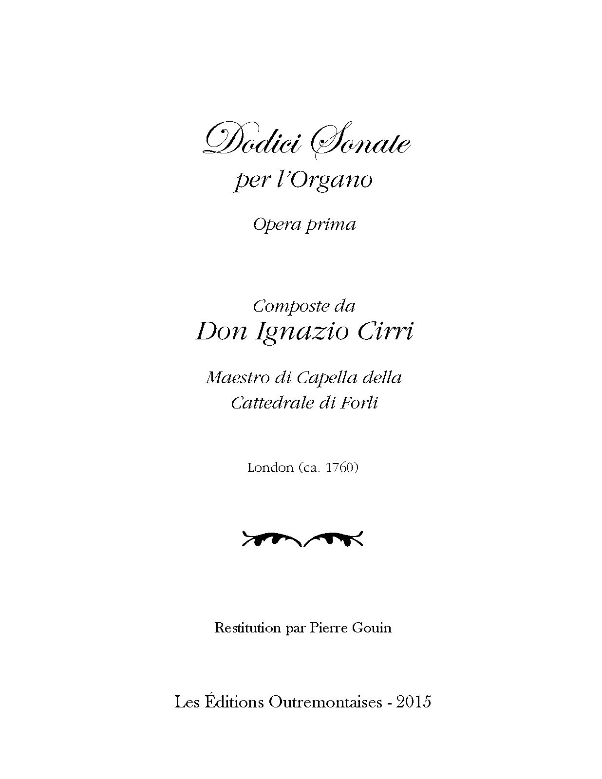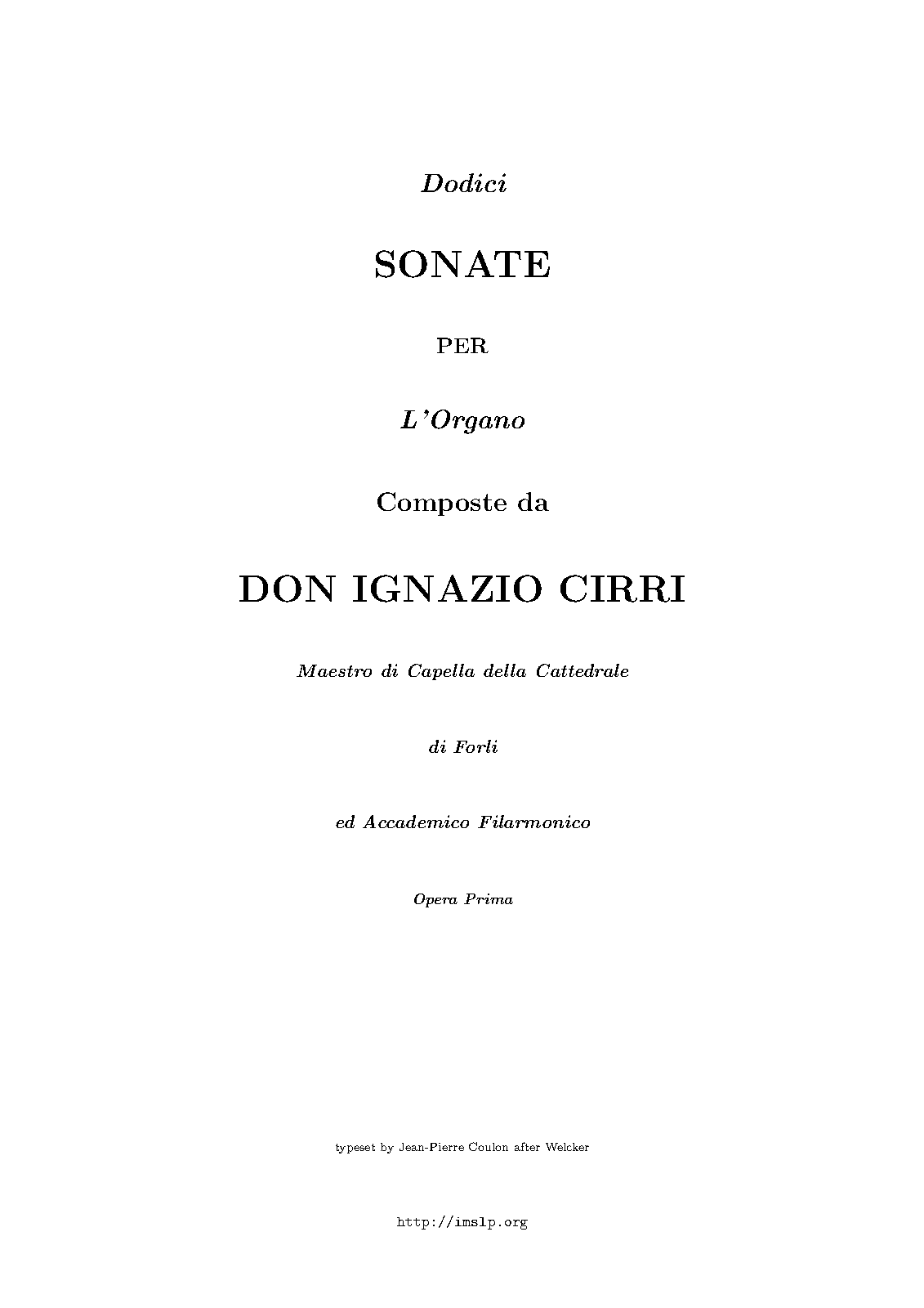 12 Sonate per l'organo, Op.1 (Cirri, Ignazio)