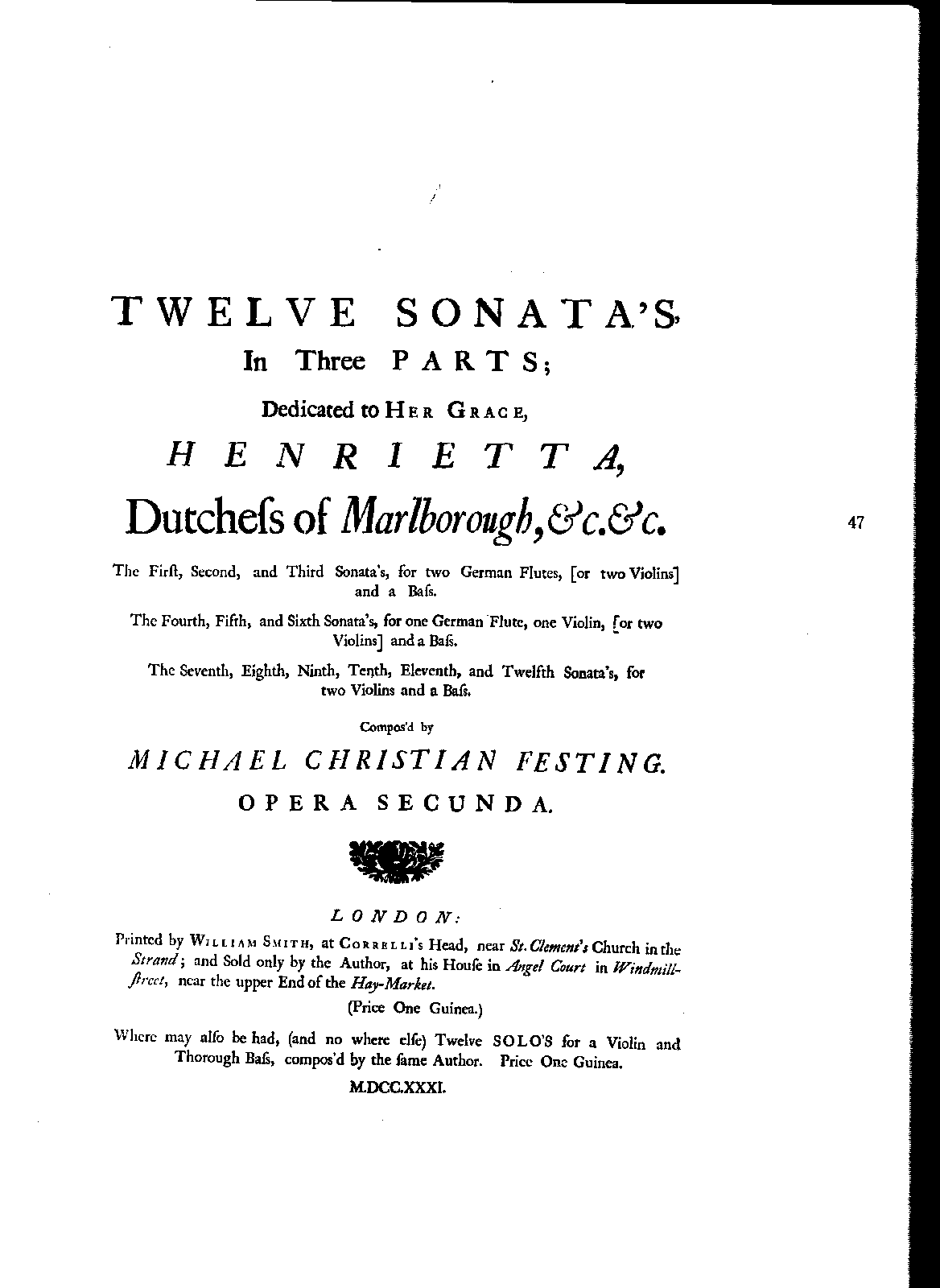 | Dedication | Henrietta, Duchess of Marlborough |