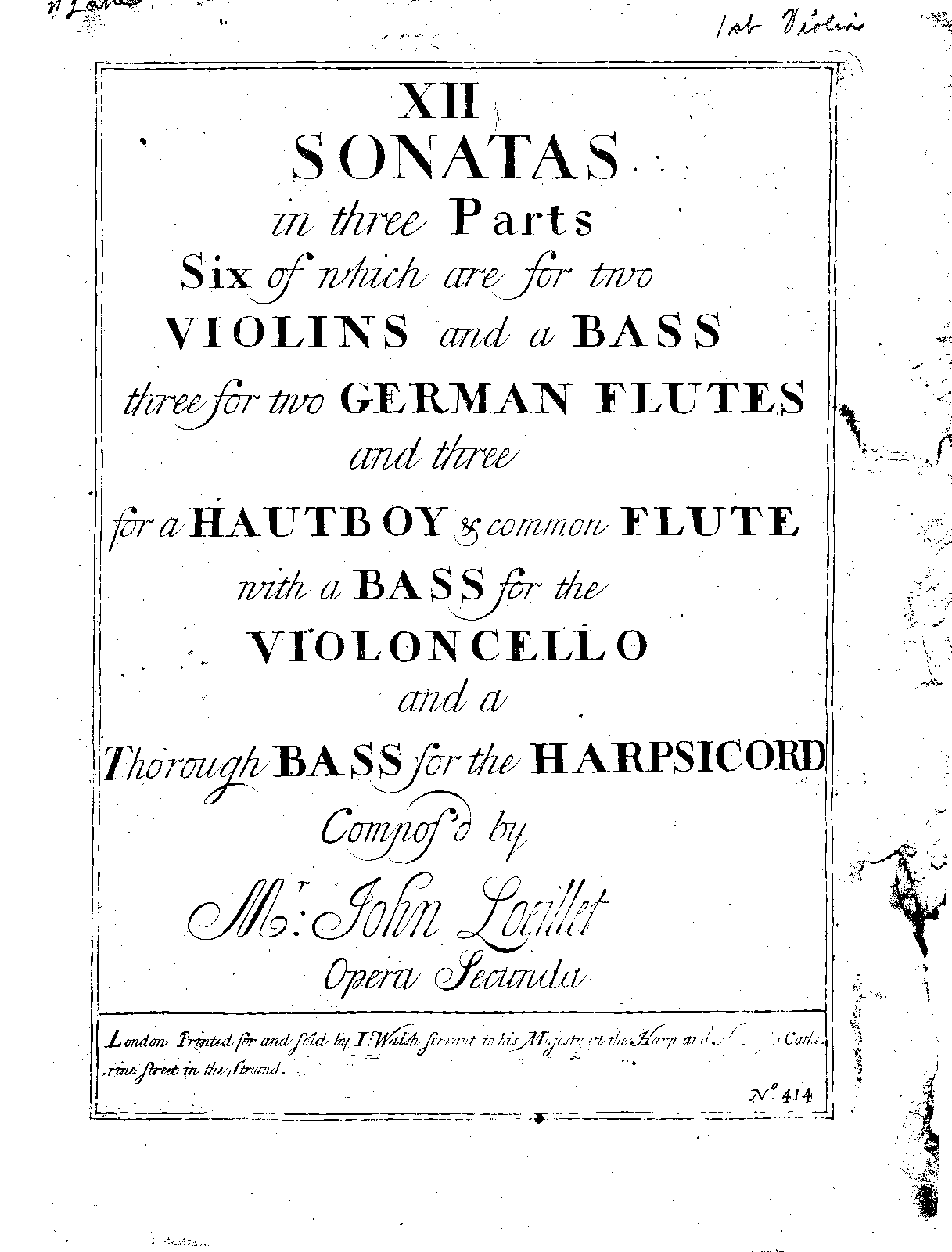 | First Publication. | 1725 ca. - London: John Walsh & Joseph Hare |
