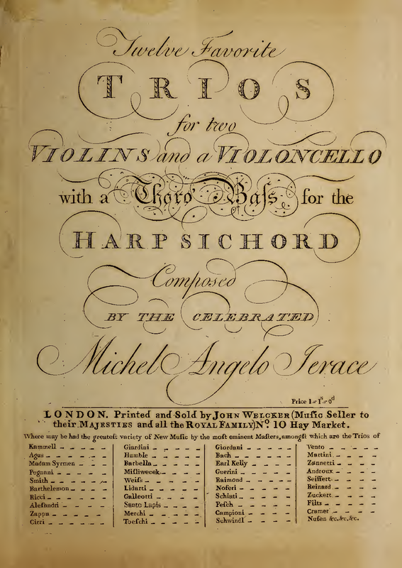 | Alternative. Title | Twelve Favorite Trios for two Violins and a Violoncello with a Thoro' Bass for the Harpsichord |
