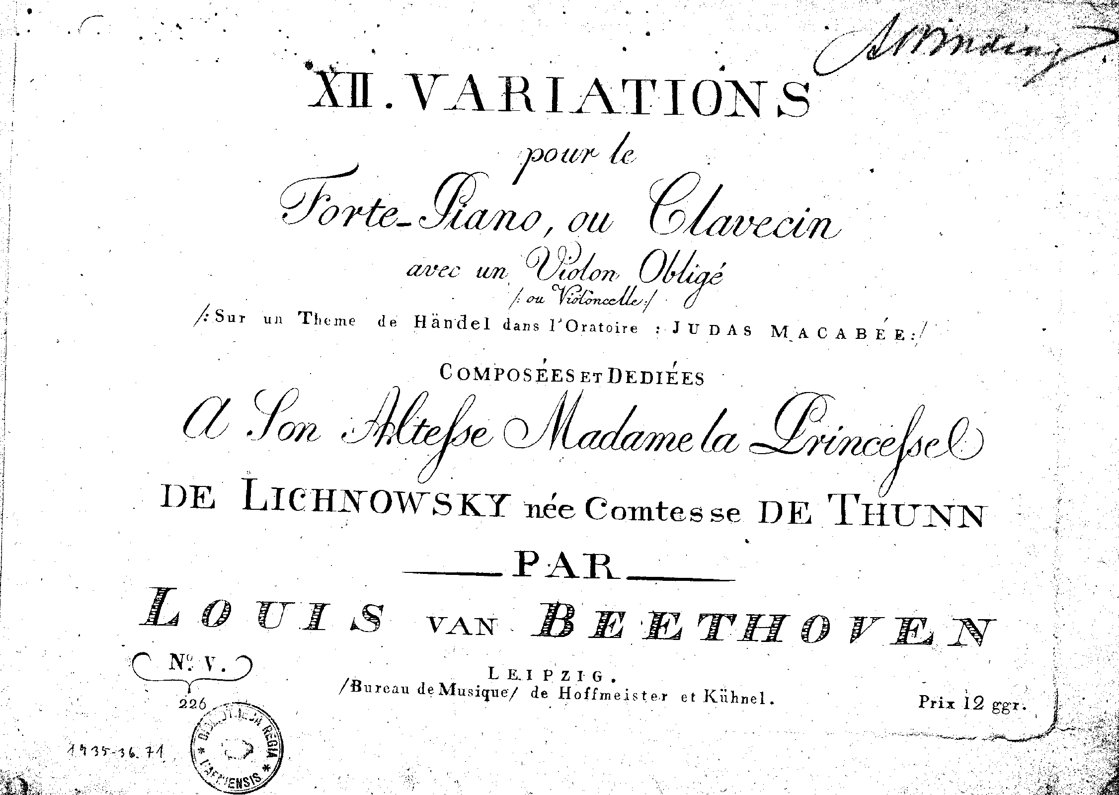 | Alternative. Title | 12 Variations on a Theme from Handel's Judas Maccabaeus |