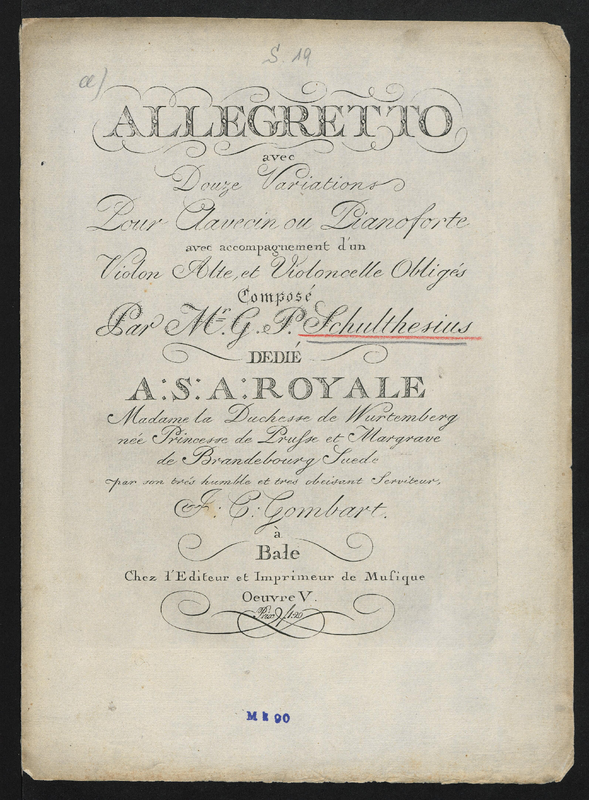 Allegretto avec Douze Variations pour Clavecin ou Pianoforte avec accompagnement d'un Violon, Alte, et Violoncelle Obliges