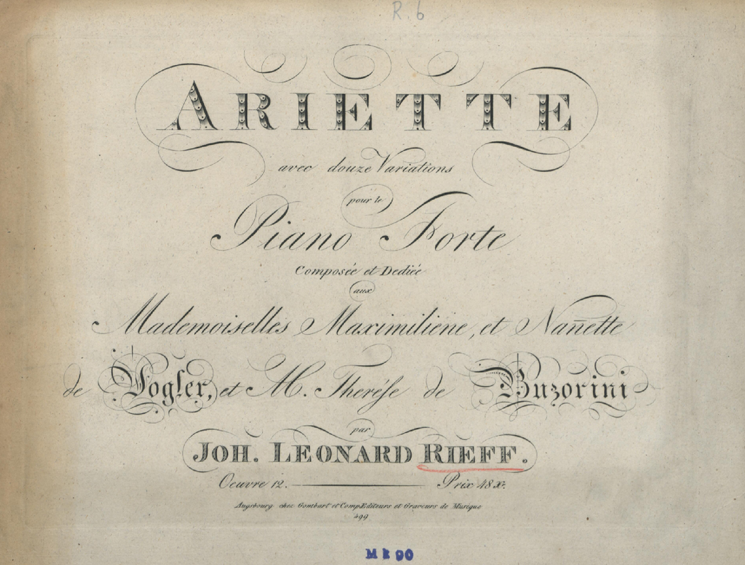 | Dedication | "Mademoiselles Maximiliene, et Nannette de Vogler, et M. Therése de Buzorini" |