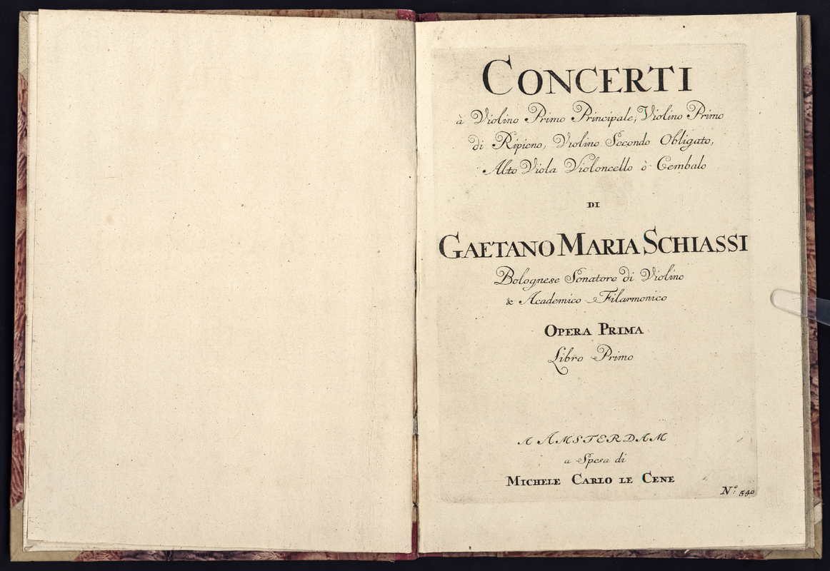 | Alternative. Title | Concerti à violino primo principale, violino primo di ripieno, violino secondo obligato, alto viola violoncello ò cembalo |