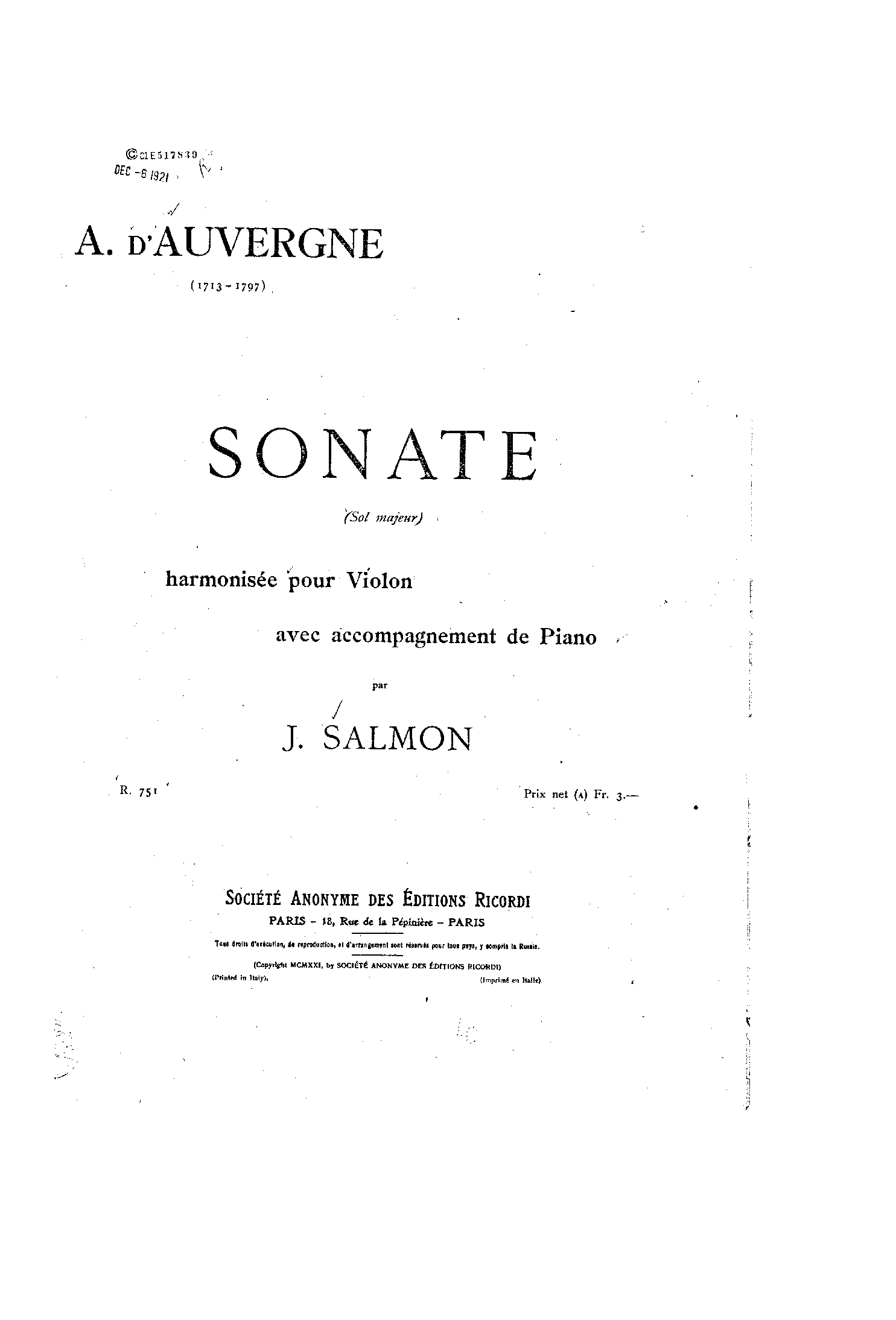 | Alternative. Title | Sonates à violon seul avec la basse-continue |