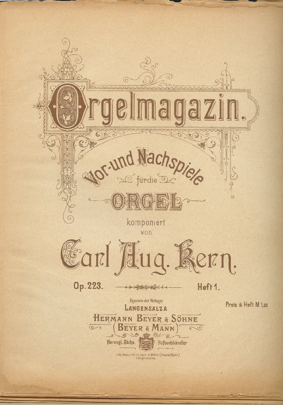 The date of first publication remains unclear. The publisher was only called "Herrmann Beyer und Söhne" after 1875. As the following issues of the "Orgelmagazin" are numbered up to op. 272, the first issue was likely published significantly earlier. This assumes, however, that Kern indeed used a consecutive numbering for his pieces.