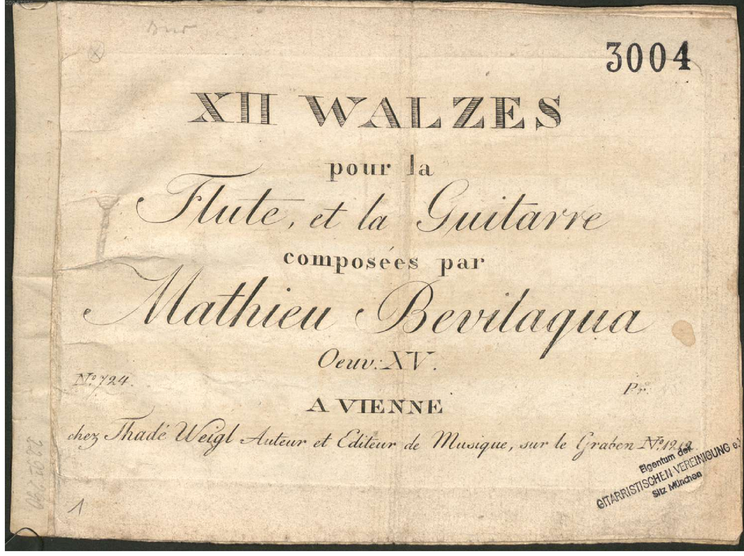 | Alternative. Title | XII Walzes pour la Flute, et la Guitarre |