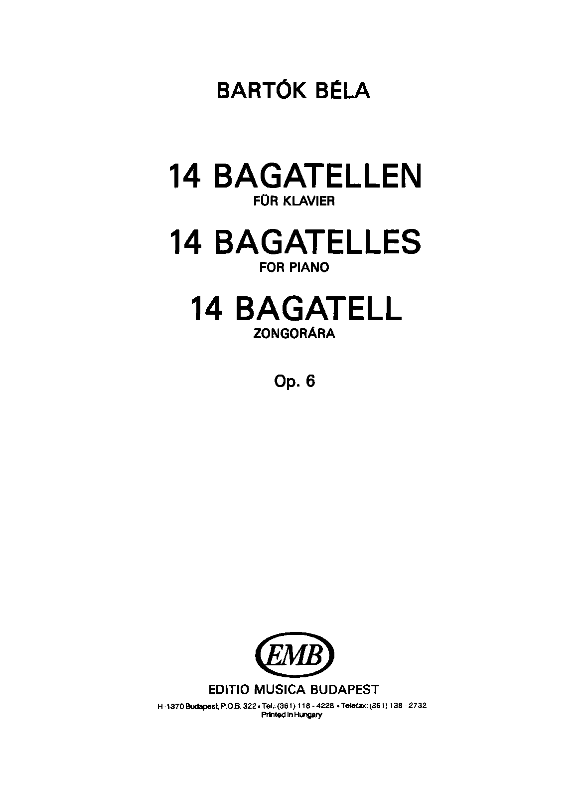 Name Aliases Quatorze Bagatelles de Bartók; 14 Bagatelles, BB 50; 14 Bagatelles, Op. 6; 14 Bagatelles, Sz. 38
