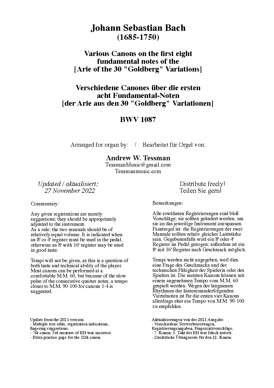 Opus/Catalogue NumberOp./Cat. No. BWV 1087 (deest)
