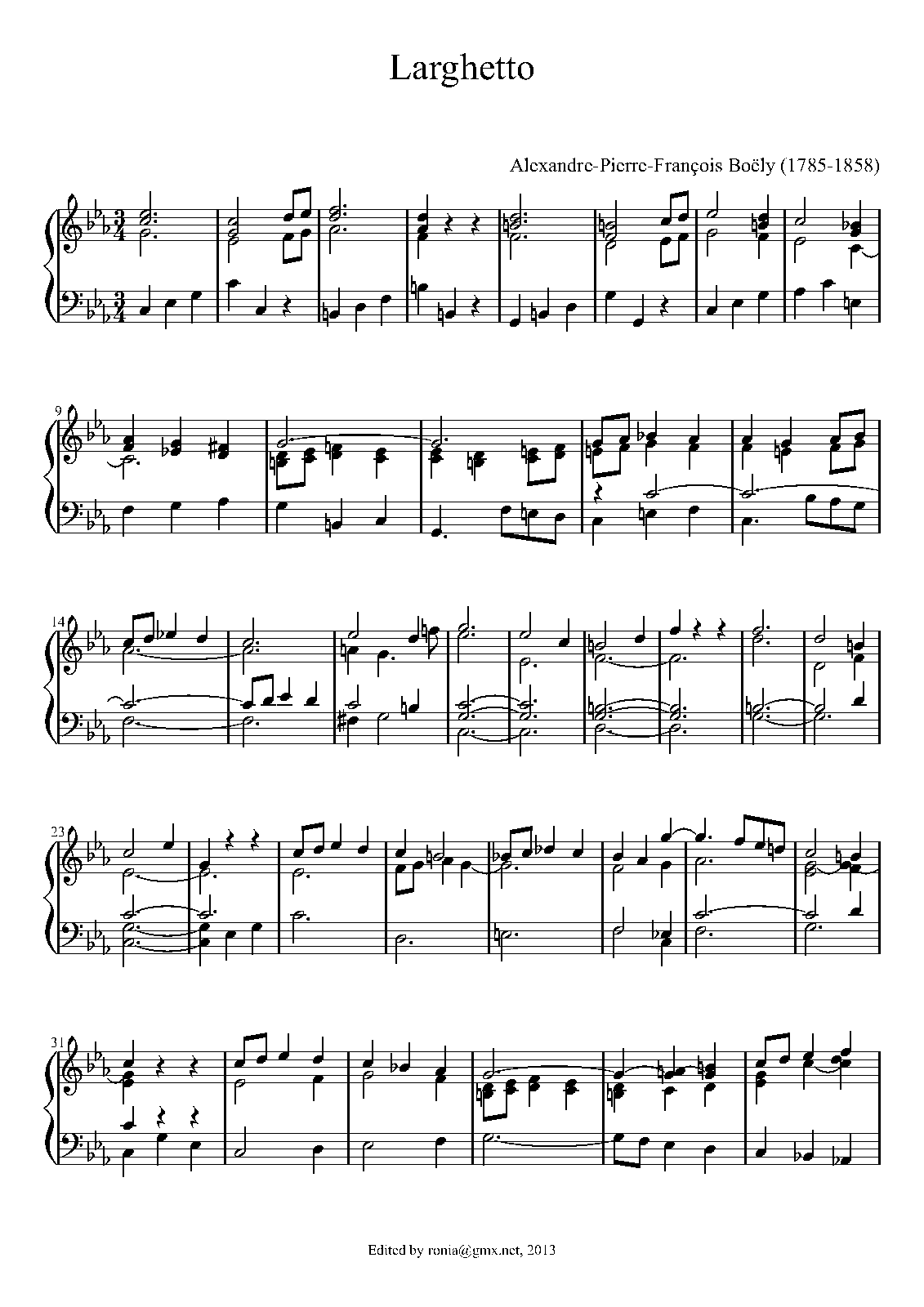 - Larghetto in C minor (Messe d'Orgue: Christe Eleison, cf. Trois pièces pour violoncelle et orgue)