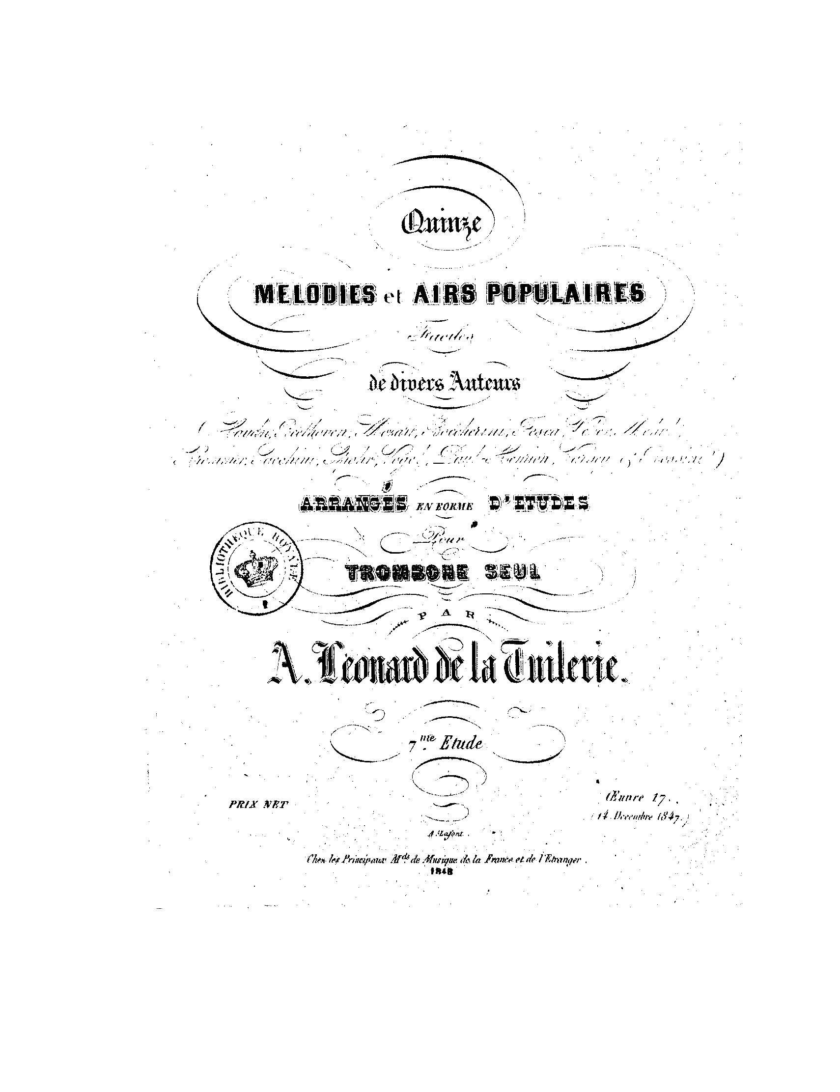 Quinze mélodies et airs populaires faciles de divers auteurs arrangés en forme d'études pour trombone seul