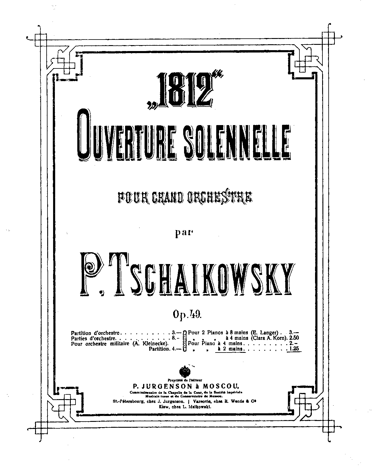 Publisher. Info. Moscow: P. Jurgenson, n.d.[1882]. Plate 4592.