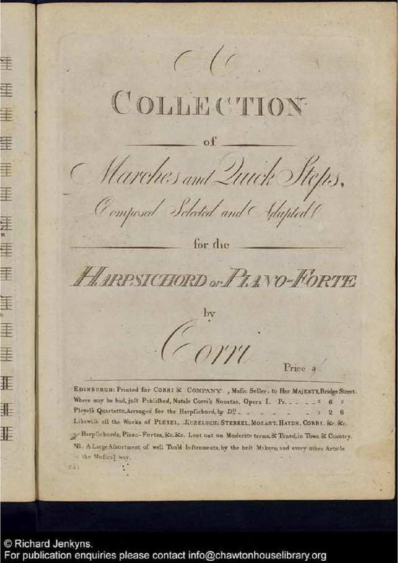 | Alternative. Title | A Collection of Marches and Quick Steps, composed selected and adapted for the Harpsichord or Piano-Forte by Corri |
