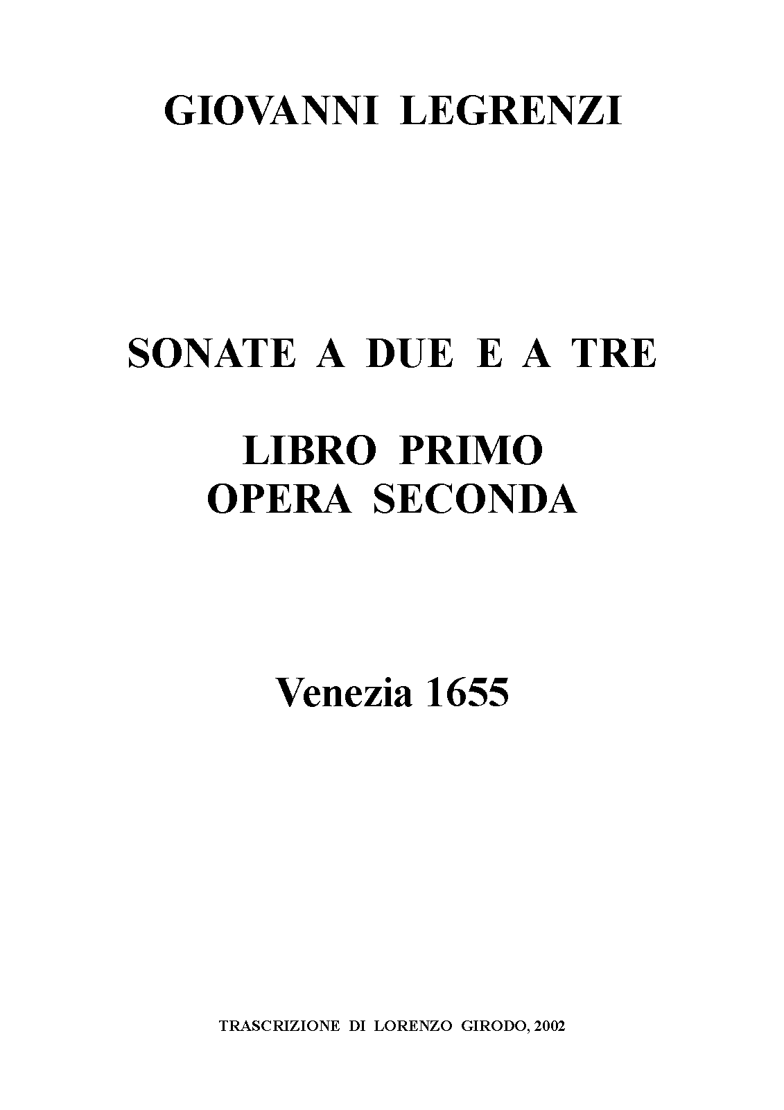 Alternative. Title Sonate a due, e tre di Giovanni Legrenzi