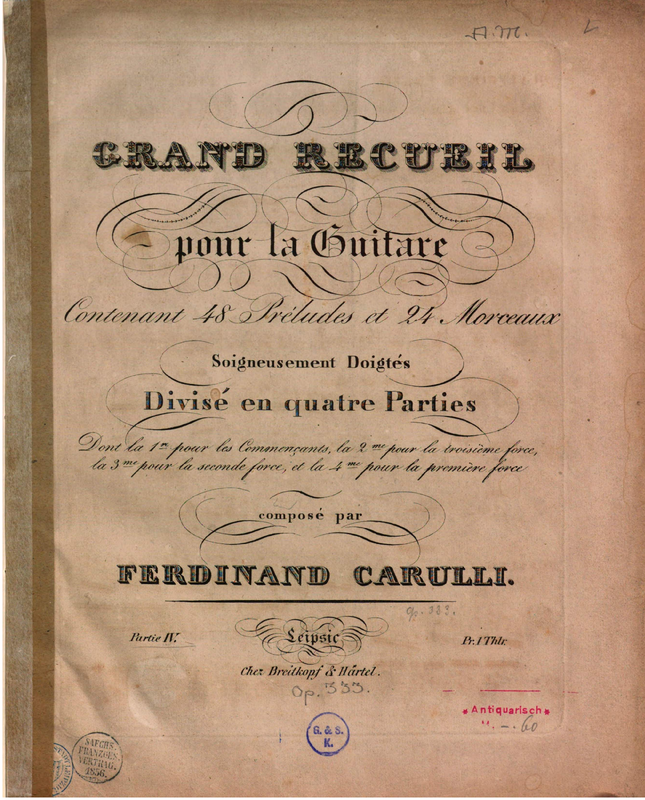 12 Romances from Antoine Romagnesi arranged for Guitar by F. Carulli Part of the Boije collection
