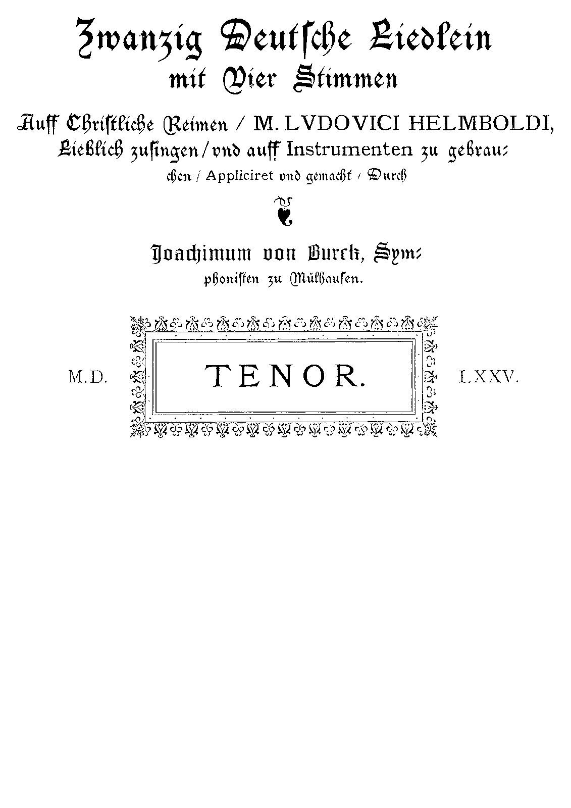 | Work Title | 20 Deutsche Liedlein mit 4 Stimmen |