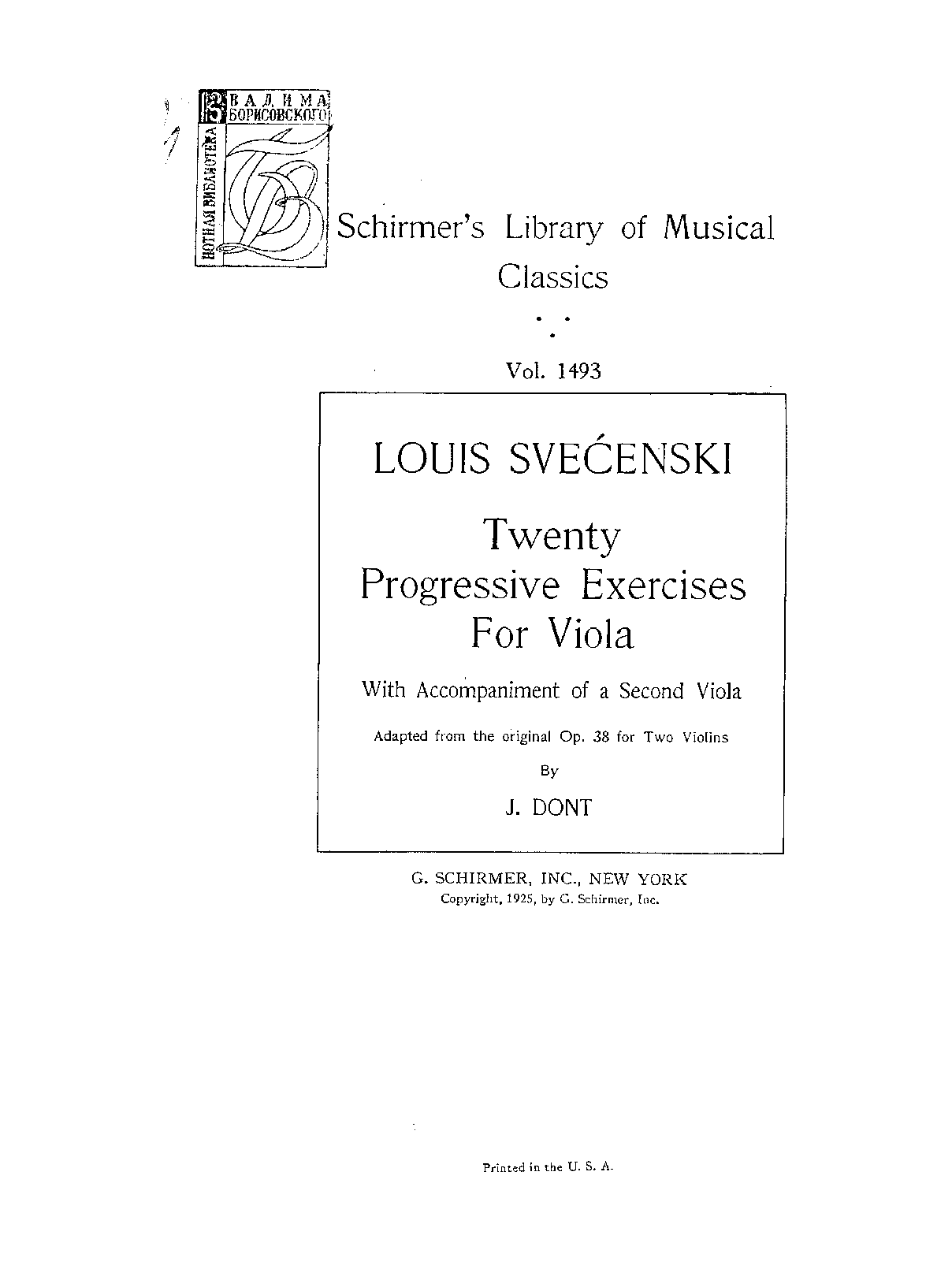 | Alternative. Title | 20 Progressive Exercises for Violin with Accompaniment of a Second Violin, Op.38 |