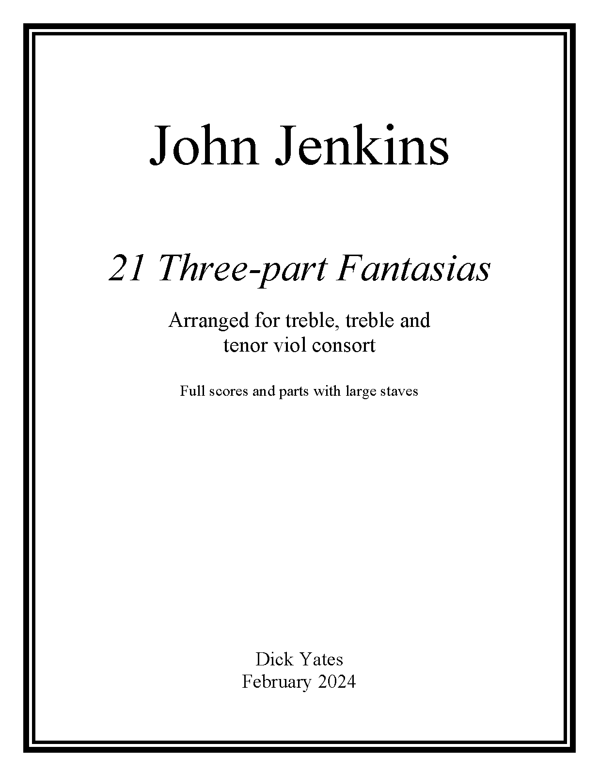 | Work Title | 21 Fantasias for Treble, Treble, Bass Viols |