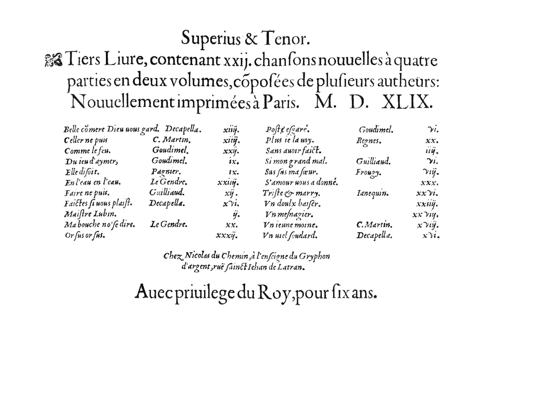 - Goudimel: Du jeu d'aymer Martin fort curieux