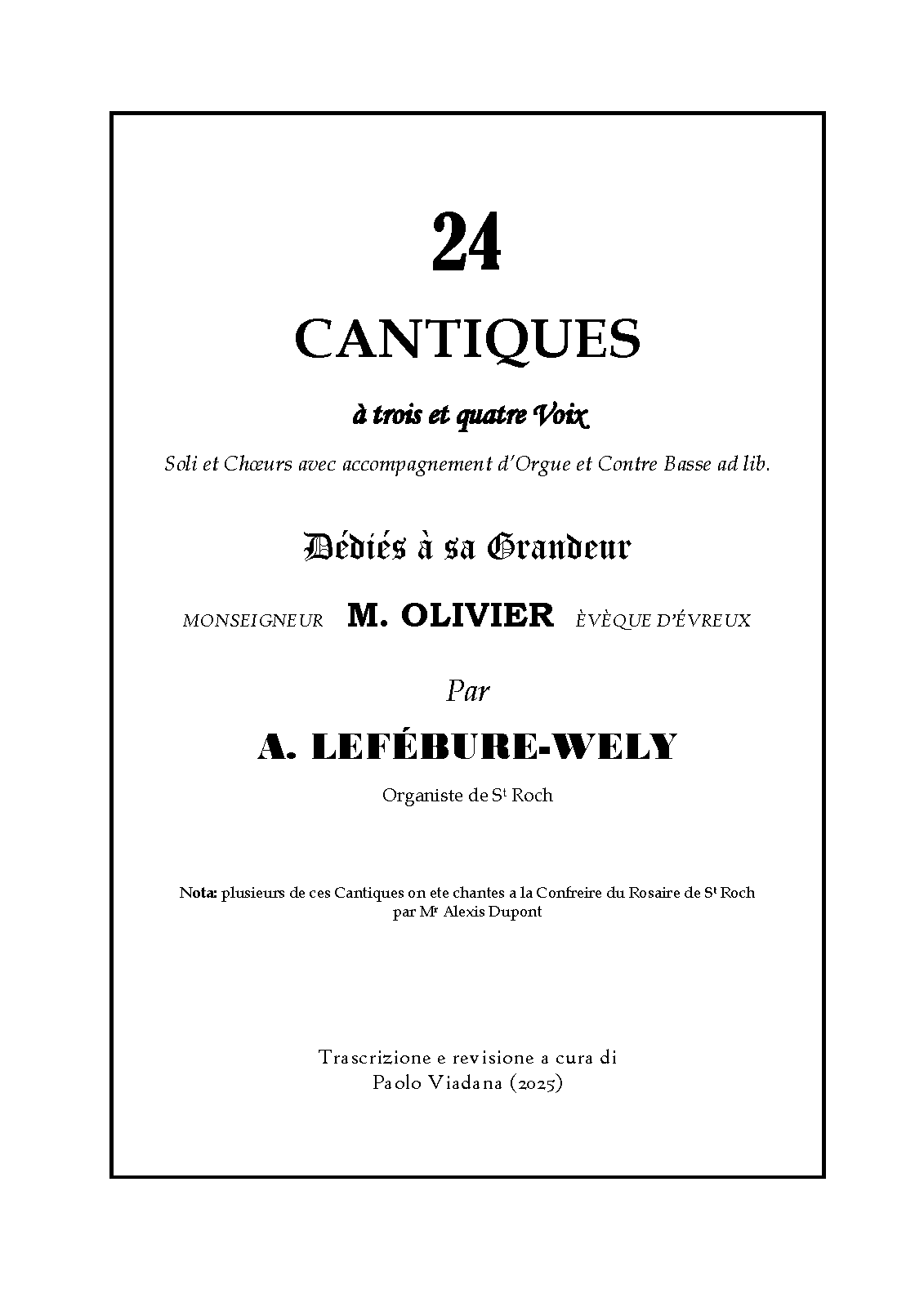 - Motet à la Ste Vierge (2 sopranos, organ); has "solo" and "duo" indications