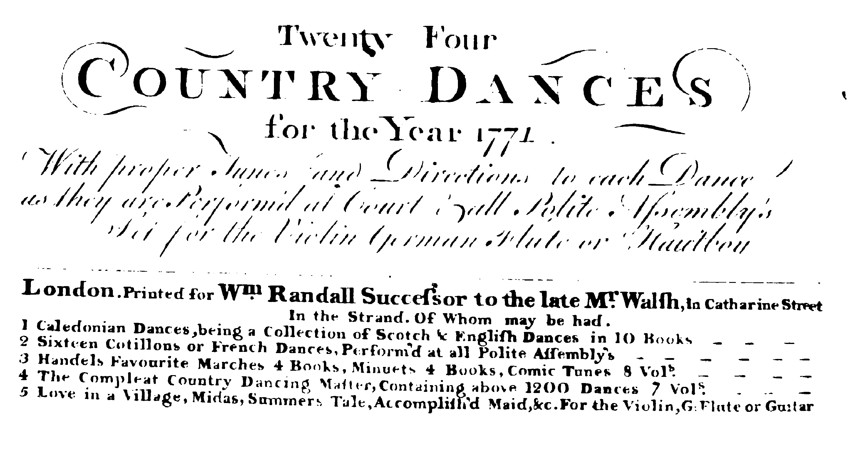 | Work Title | Twenty Four Country Dances for the Year 1771 With proper Tunes and Directions to each Dance as they are Performed at Court, & All Poilte Assemblys Set for the Violin, German Flute or Hautboy |
