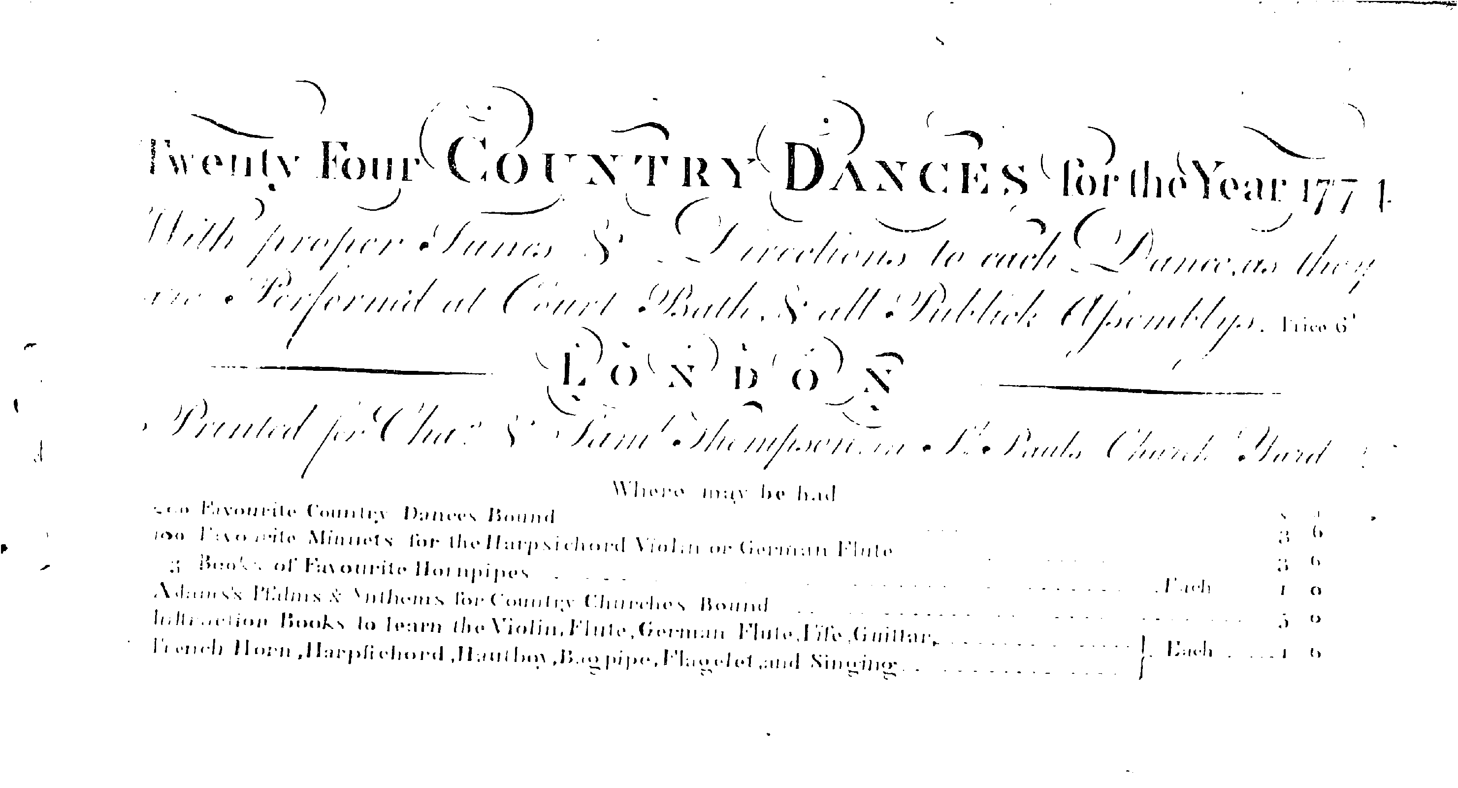 24 Country Dances for the Year 1774 With proper Tunes & Directions to each Dance, as they are Perform'd at Court, Bath, & all Publick Assemblys
