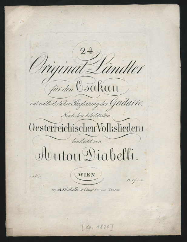 Alternative. Title 24 Original-Ländler für eine Flöte mit Begleitung der Guitarre nach den beliebtesten Oesterreichischen Volksliedern bearbeitet von Anton Diabelli ... 9te Lieferung der Tänze; 24 Original Ländler für das Piano-Forte, nach den beliebtesten Oesterreichischen Volksliedern bearbeitet von Anton Diabelli