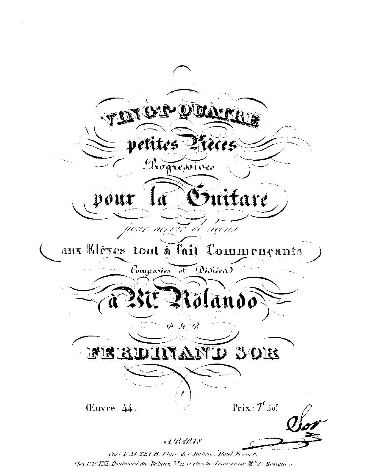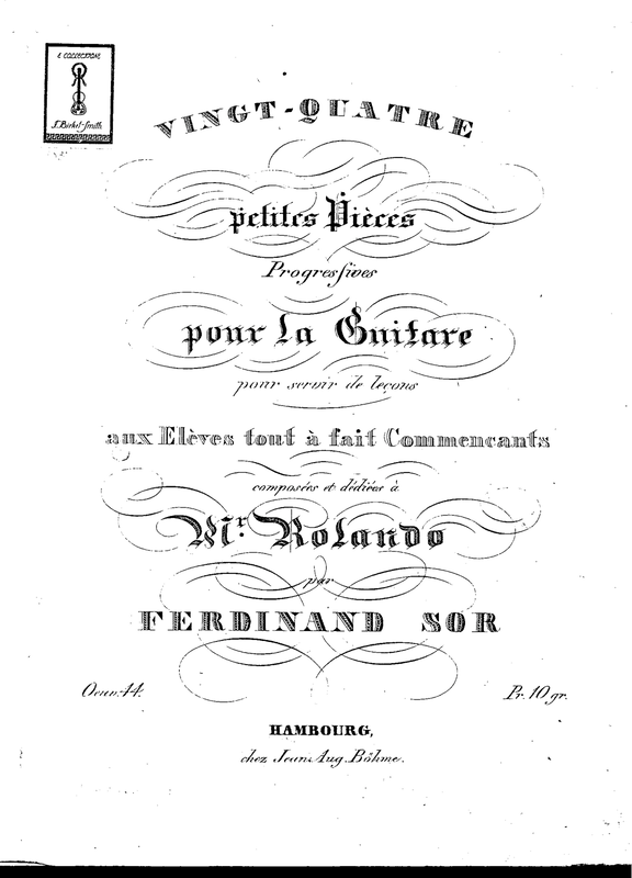 | Alternative. Title | 24 Petites pièces progressives pour la Guitare pour servir de leçons aux élèves tout à fait commençants |