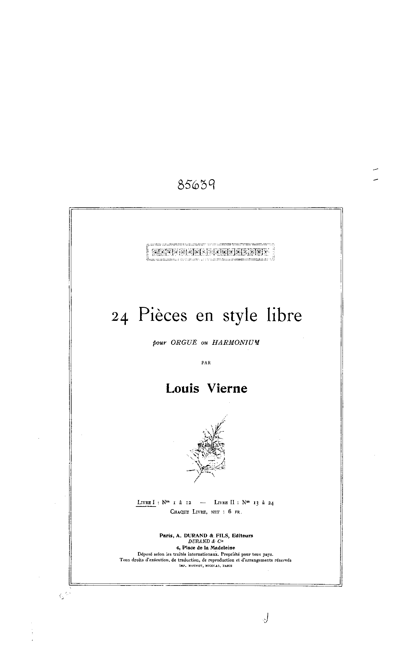 | Work Title | 24 Pièces en style libre pour Orgue ou Harmonium |