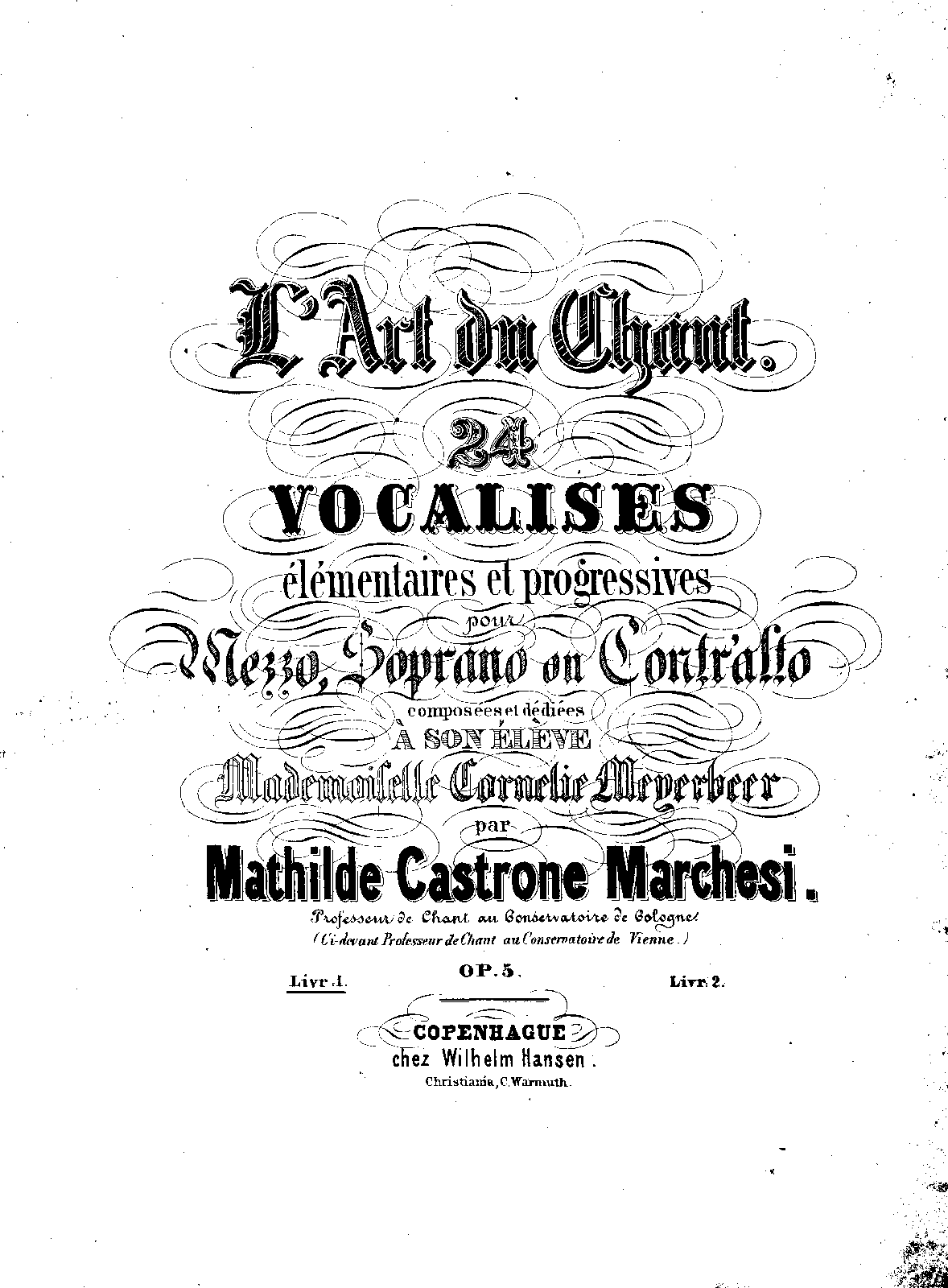 | Work Title | L'Art du Chant. 24 Vocalises pour Mezzo, Soprano ou Contr'alto. Op. 5. Liv. 1-2. |