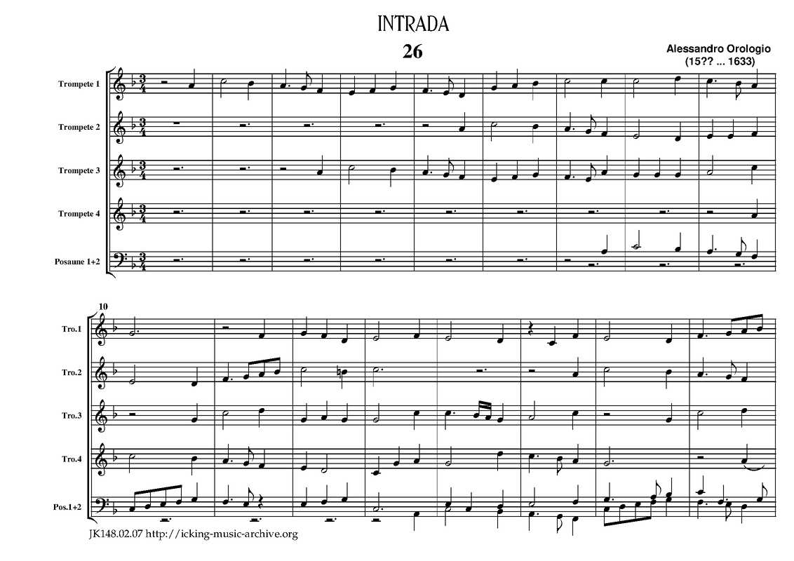 | Genre Categories | Intradas; For 2 treble, alto, tenor, bass instruments; Scores with open instrumentation; |