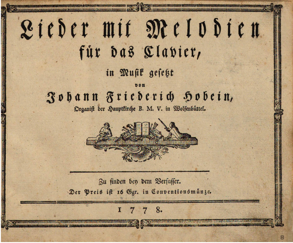 | Alternative. Title | Lieder mit Melodien für das Clavier, in Musik gesetzt von Johann Friederich Hobein |