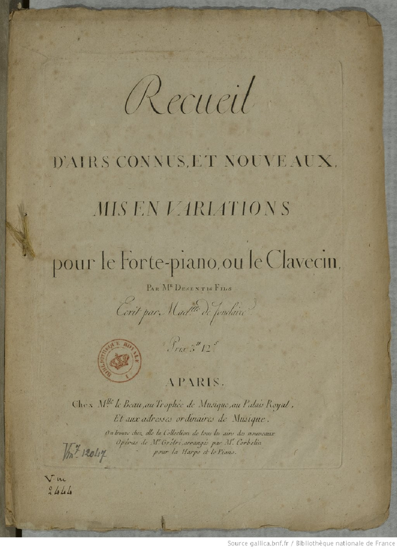 | Alternative. Title | Recueil d'airs connus, et nouveaux, mis en variations pour le forte-piano, ou le clavecin |