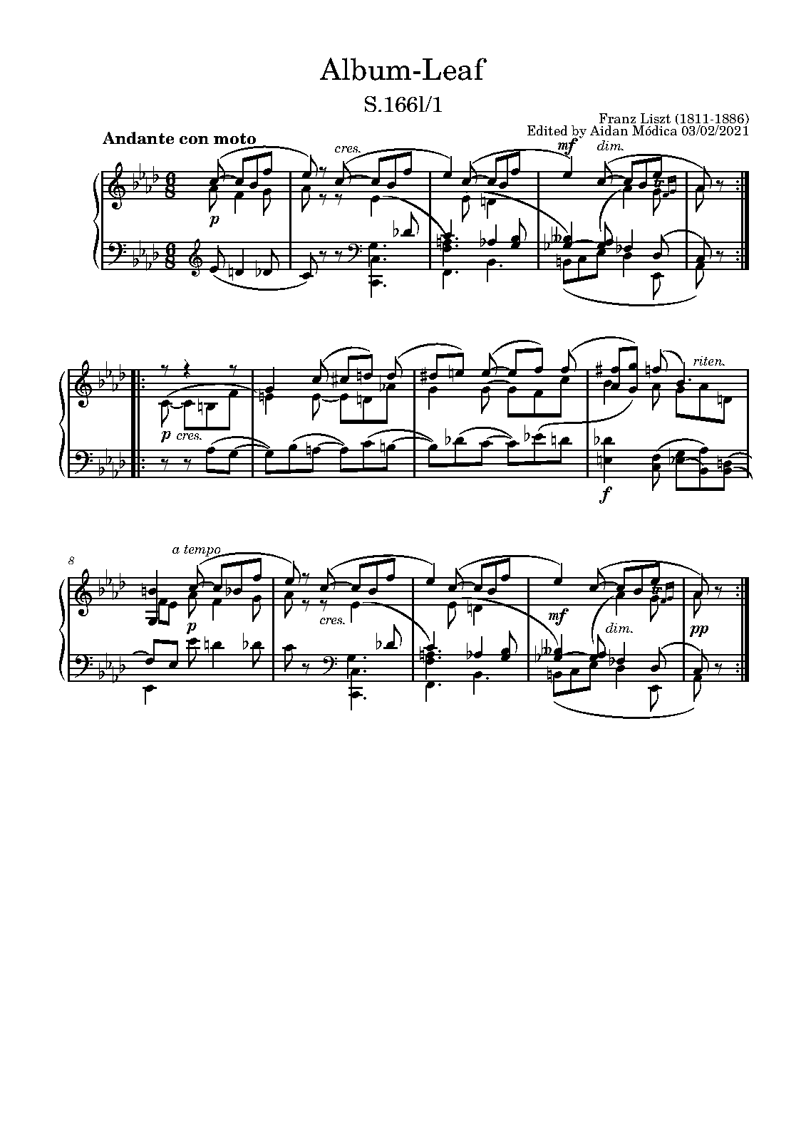 | Work Title | Album-leaf 'Andante con moto' (S.166l/1) Album-leaf 'Weimar III' (S.166l/2) |