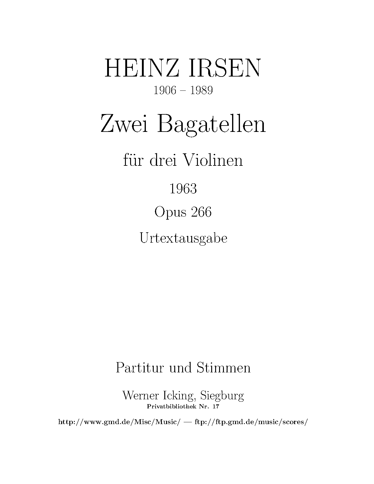| Genre Categories | Bagatelles; For 3 violins; Scores featuring the violin; For 3 players |