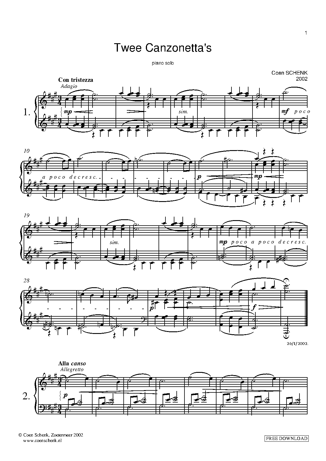 | Genre Categories | Canzonettas; For piano; Scores featuring the piano; For 1 player |