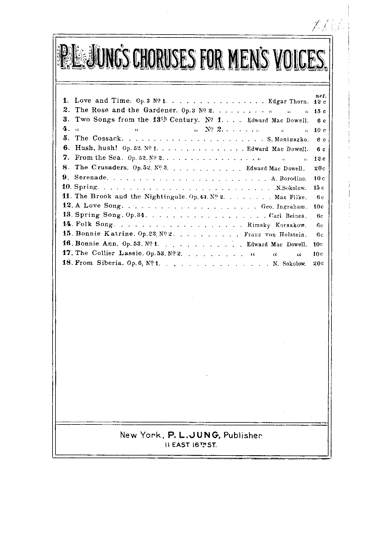 | Genre Categories | Secular choruses; Choruses; For male chorus; |