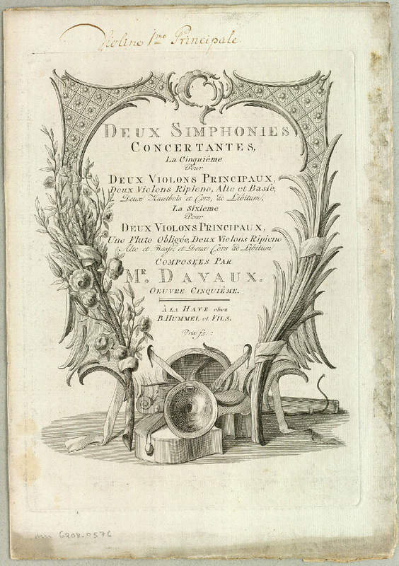 | Work Title | Deux Simphonies Concertantes, La Cinquiême Pour Deux Violons Principaux, Deux Violons Ripieno, Alto et Basse, Deux Hautbois et Cors, ad Libitum, La Sixieme Pour Deux Violons Principaux, Une Flute Obligée, Deux Violons Ripieno, Alto et Basse, et Deux Cors ad Libitum. |
