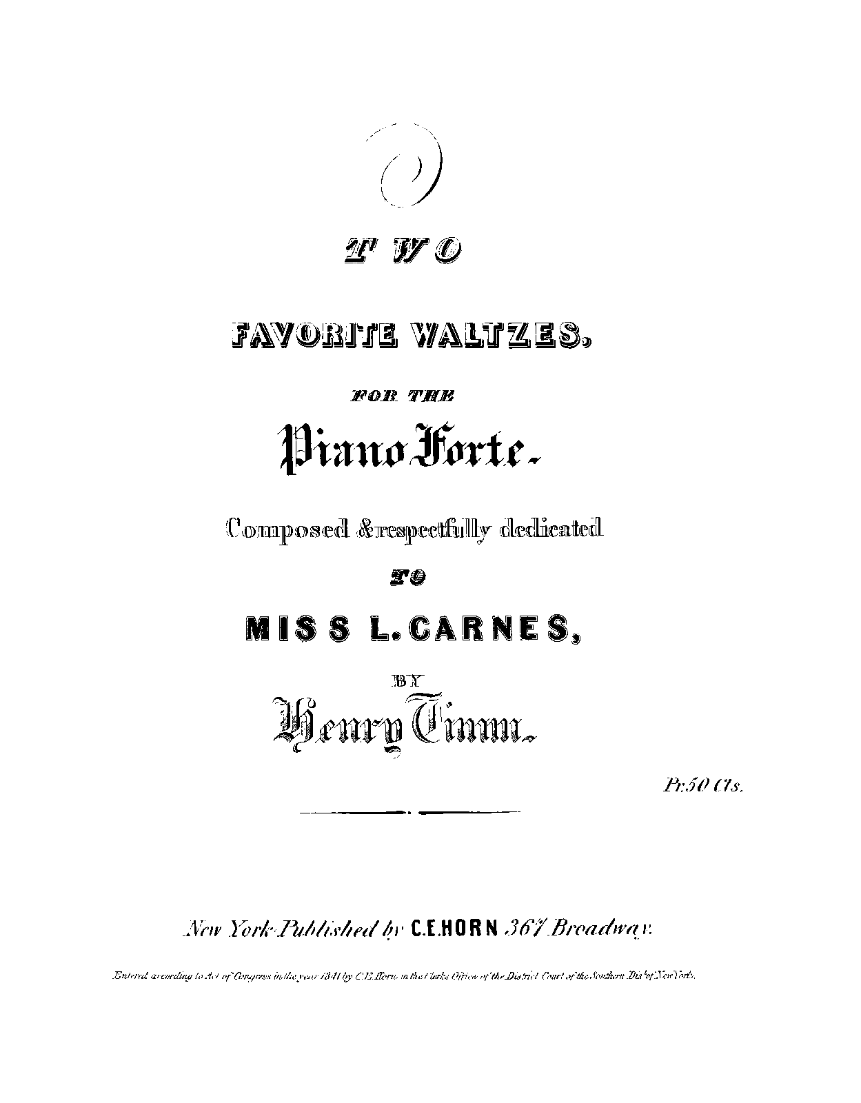 | Alternative. Title | Two Favorite Waltzes for the Pianoforte |