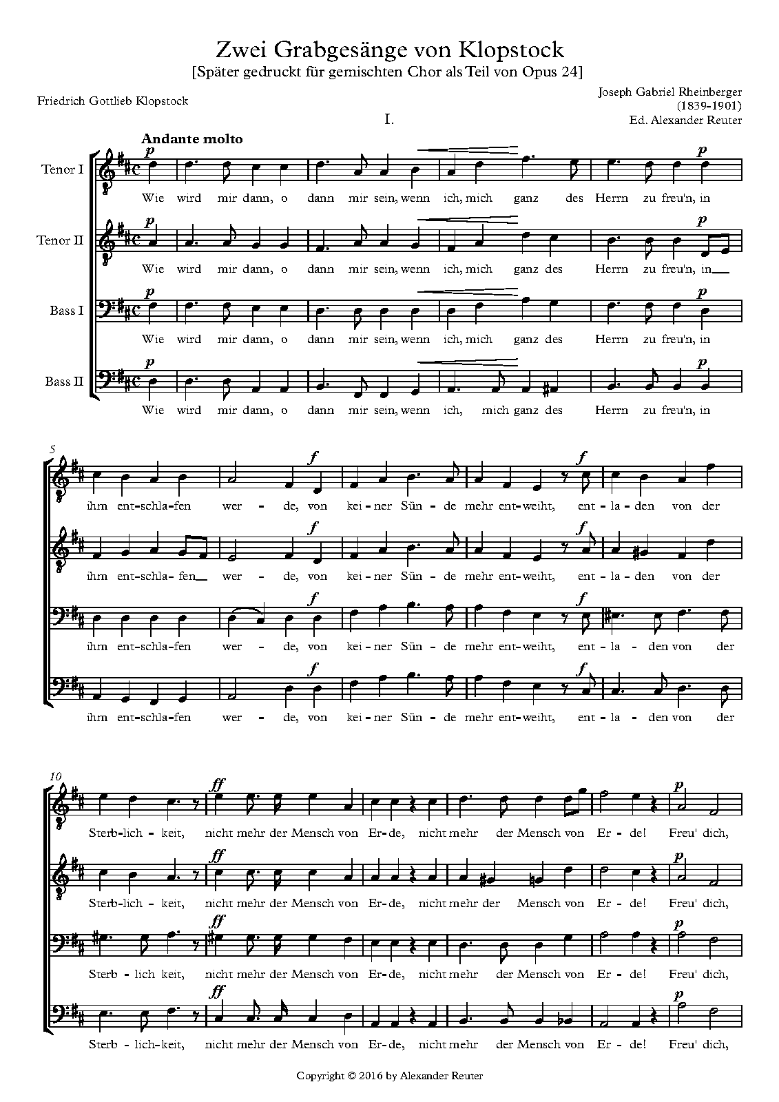 Later aranged for mixed chorus and included in the 4 Lieder des Gedächtnisses, Op.24 (Nos.1, 4)