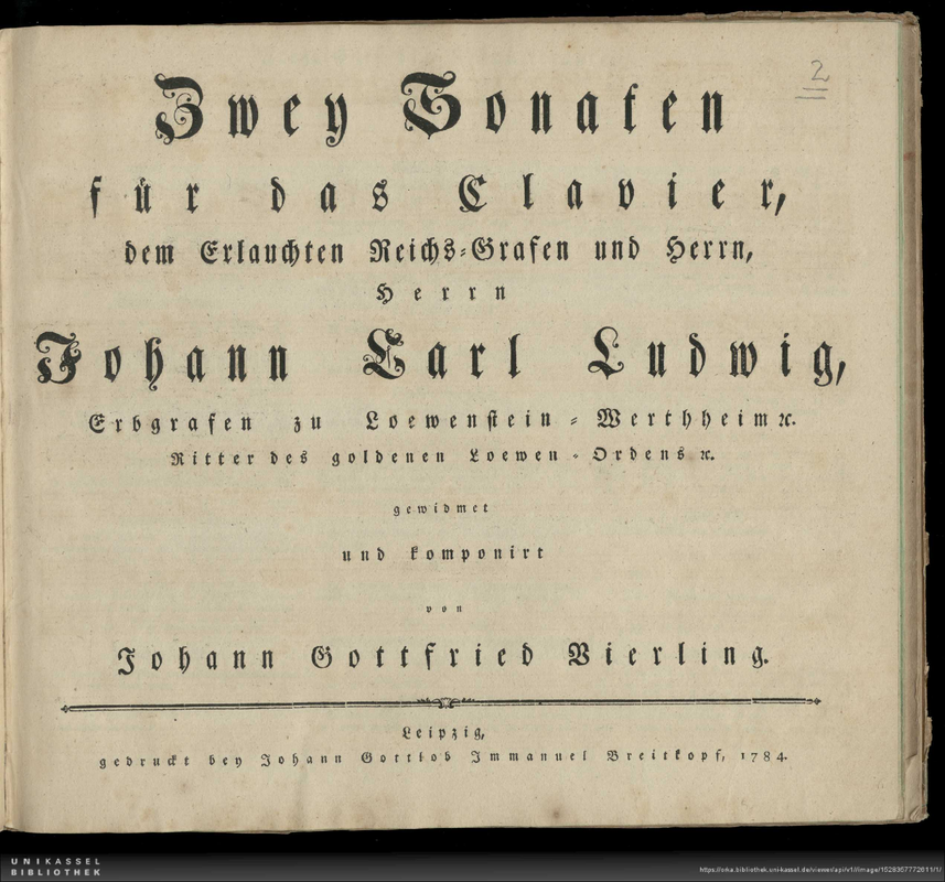 | Dedication | Johann Carl Ludwig zu Loewenstein-Werthheim etc. |