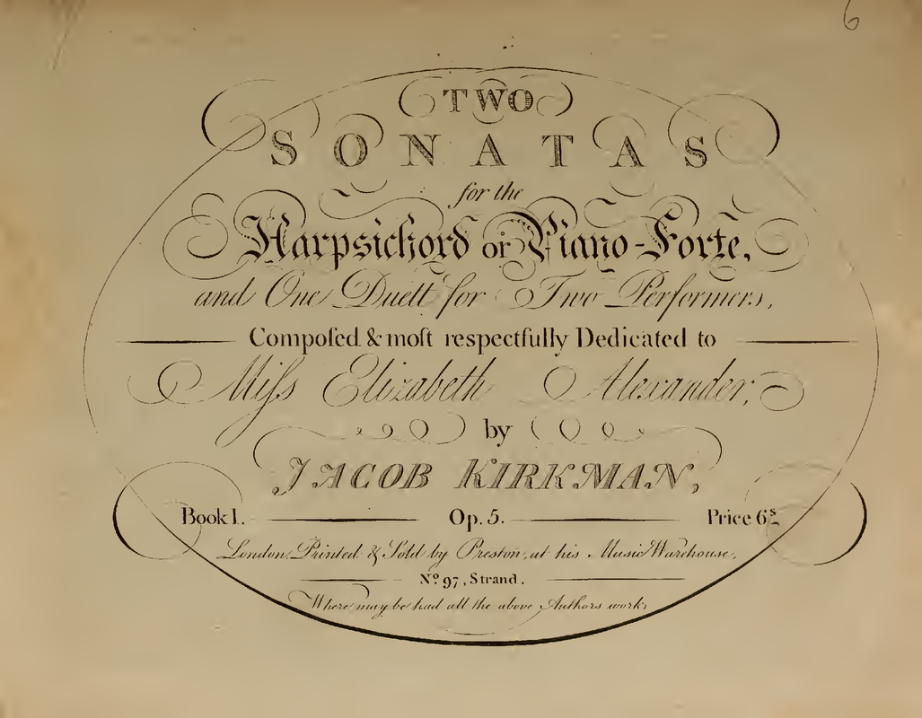| Alternative. Title | Two Sonatas for the Harpsichord or Piano Forte, and One Duett for Two Performers |