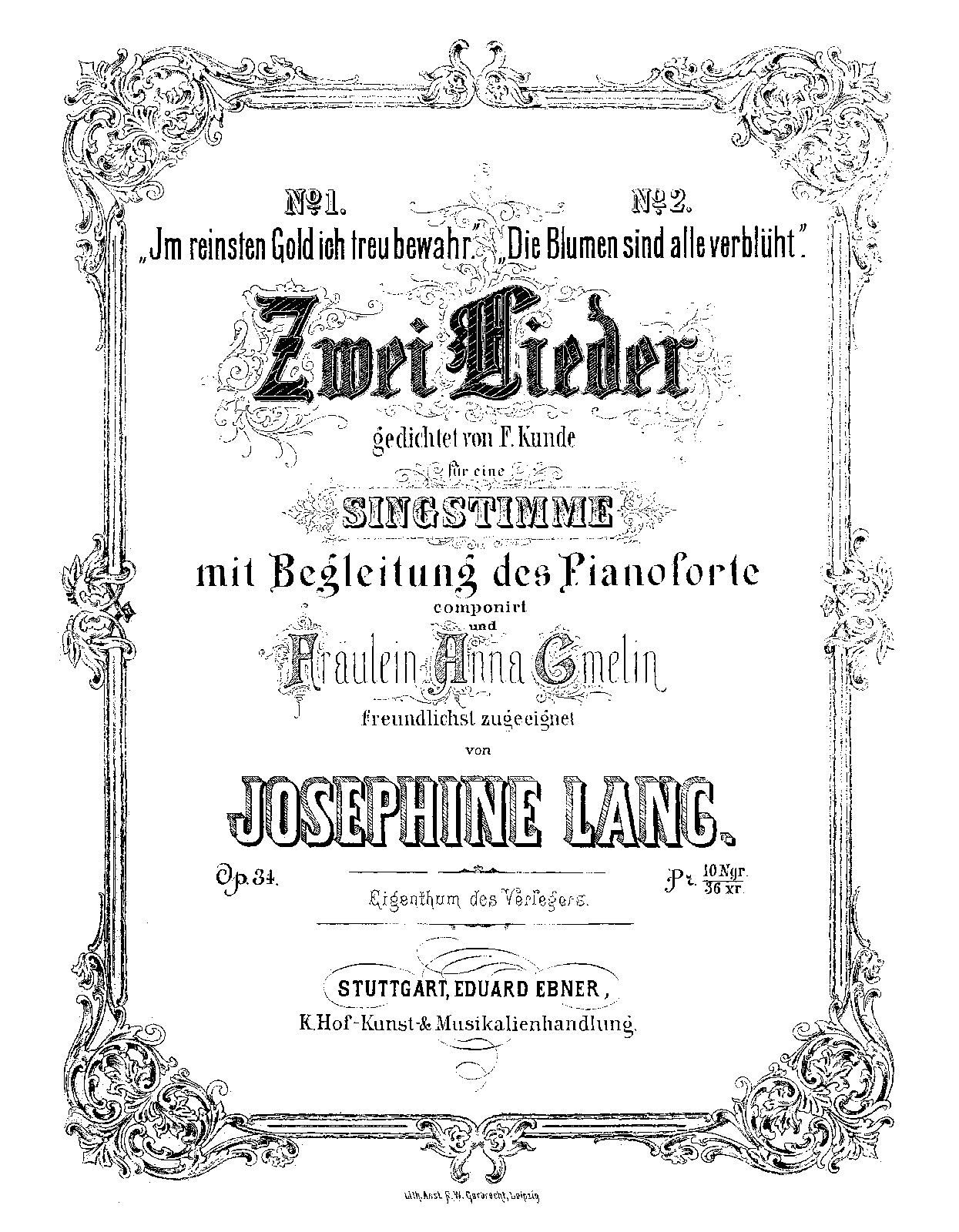 | Dedication | Fräulein Anna Gmelin freundlichst zugeeignet |