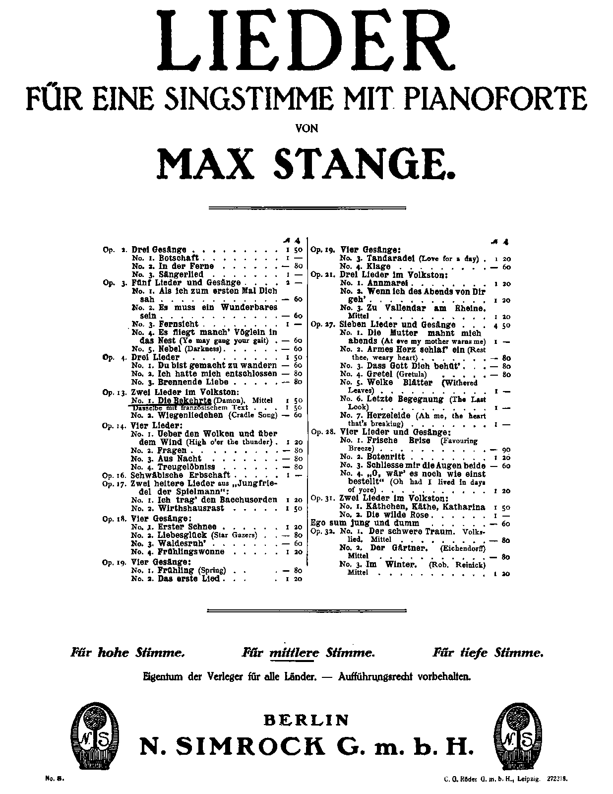 | Genre Categories | Lieder; Songs; For voice, piano; |