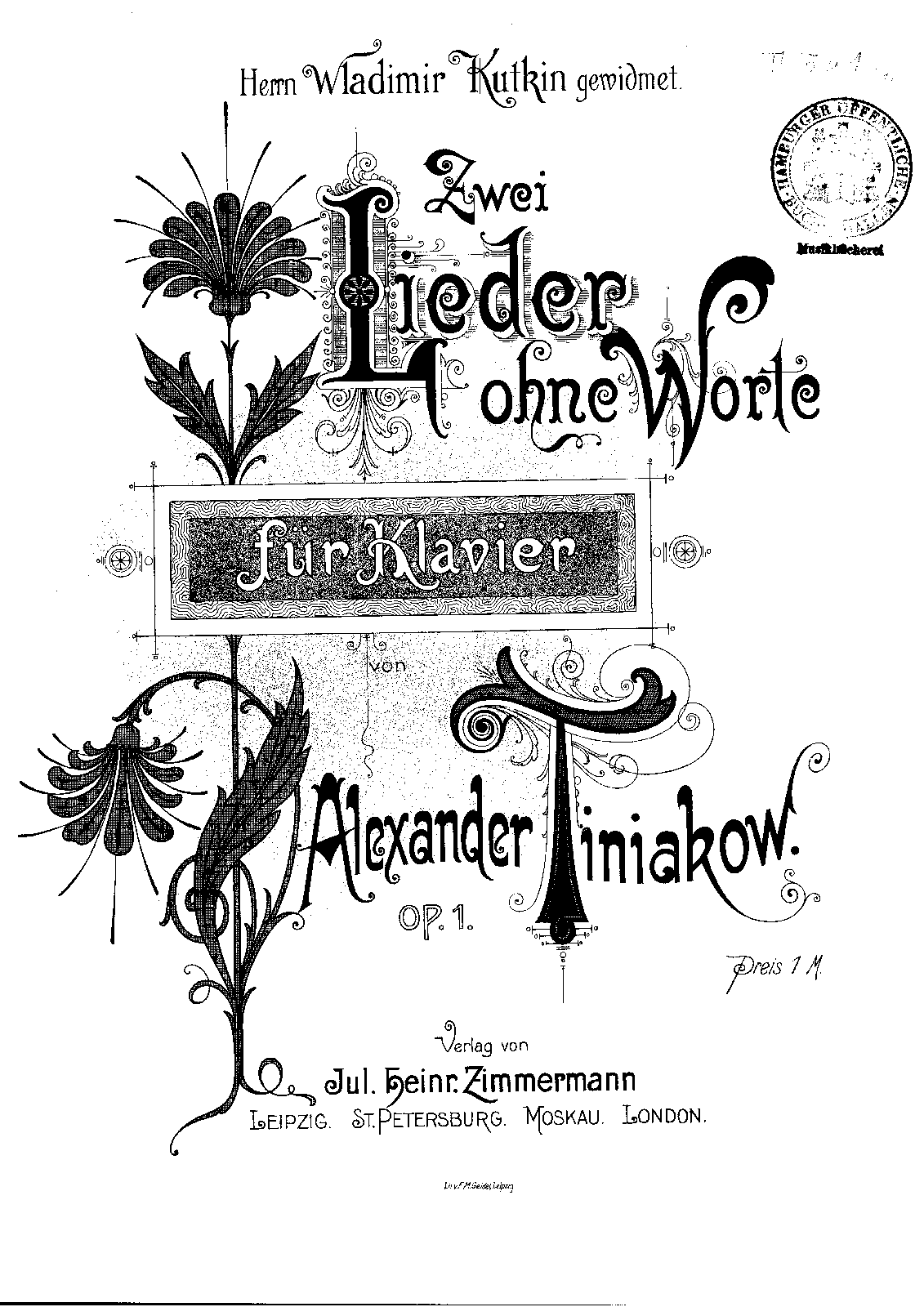 | First Publication | 1900 – Leipzig: Zimmermann |